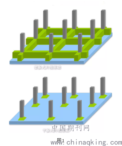 地基是房屋建筑的重要支撑,通常在地下展开作业,存在一定的隐蔽性,当地基投入使用后,一旦发生质量问题,难以及时有效展开修复处理。我国地域广阔、地区差异大,地质条件复杂,尤其地质灾害和自然灾害频发地区,对施工技术和工程质量都有着严格要求,这些都会在一定程度上增加地基基础工程建设难度。房屋建筑地基基础施工技术主要包括筏板基础、强夯法、静压力桩、注浆法、素土挤压桩施工技术、灌注桩施工技术等。其中,筏板基础是指当上部结构荷载较大,而所在地的地基承载力又较软弱时,采用简单井格基础或条形基础已不能适应地基变形的需要时,将墙或柱下基础连成一片,使整个建筑物的荷载作用在一块整板上,能够有效调整地基的不均匀沉降,其主要构造形式包括梁板式筏板基础和平板式筏板基础(图1)。在松江区小昆山镇翔昆路公交枢纽站新建工程中就采用了筏板基础,基础垫层砼强度等级为C20,基础砼强度等级为C35,砼抗渗等级为P6,基础钢筋保护层厚50mm,梁柱20mm,外墙50mm。