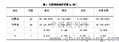 观察组治疗总有效率明显高于对照组,组间差异明显(P<0.05)。如表1 :