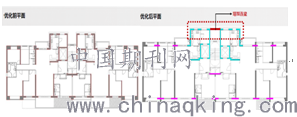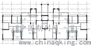 当平面总长不超过规范45m的情况下,取消双拼户型的变形缝,增加结构整体刚度,减少混凝土和钢筋用量如下图一所示。