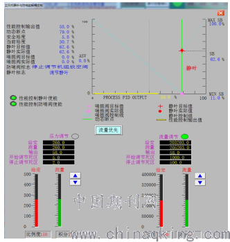 4.3 最后在主备机切机画面中投入主机切系统功能,此时性能控制器首先把总管出口压力切换为风机出口压力,然后主风机组自动把备风机当前的出口压力+DB值及总管流量设定为目标值,自动加载到目标值;