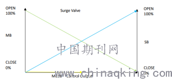 4.4 备风机组性能控制器自动切换为性能单独控制防喘阀,入口阀保持暂时保持不变。当检测到总管增加流量超过设定的范围(1200NM3/H)时,程序暂时停止关闭主风机防喘振阀。而后备风机组防喘阀开始逐渐打开,当检测到总管减少流量超过设定的范围(600NM3/H)时,程序暂时停止打开备风机防喘振阀。