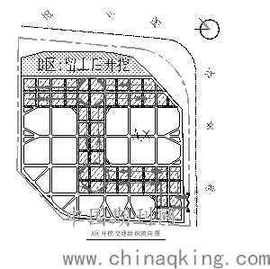 7.3.5 B区二~四层土开挖顺序:为控制基坑开挖过程中的变形,共划分为10小块,抽条开挖,土方开挖顺序为B-1→B-2→B-3→B-4→B-5→B-6→B-7→B-8→B-9→B-10