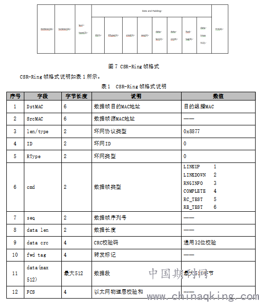 CSR-Ring帧利用了以太网帧格式,如图7所示,图中的数字指的是字节数。
