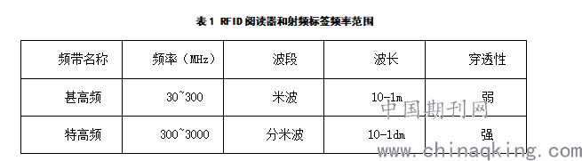 RFID系统在智能仓储系统建设、应用及管理中发挥着至关重要的作用。从结构组成来看,其不仅包含阅读器、无线射频电子标签,而且涉及网络信息数据交换设备等单元[1]。就阅读器而言,其包含了固定式和手持便携式两种形态,在阅读器的作用下,可实现物资出入库和盘点的系统管理。在智能仓储系统中,阅读器主要是通过发射无线射频电磁波来识别物资上的电子标签,以此来达到信息收集和预处理的作用。无线射频标签本质上是一种电子标签,在企业物资仓储系统中,该电子标签多选择特高频无源标签。无线射频标签的工作频率一般保持在860MHZ—960MHZ,这一频率符合EPCglobal标准频率规定,是适合阅读器和射频标签通信的标准频段。从无线射频标签内部结构来看,其包含天线和芯片两个单元,RFID阅读器和射频标签的频率范围如表1所示。无线AP、交换机和路由器是网络信息数据交换设备的基本组成单元,在无线AP编译作用下,电信号会被转换成为无线电讯号并发送出来,形成无线网络的覆盖,随后通过路由器连接多个逻辑子网,可系统采集各个物资的无线射频标签信号,实现物资管理过程中的信息传递。要注意的是,在RFID系统应用中,还应注重RFID中间件的系统管理,以此来减少发往供应链系统数据库的数据量,保证数据的完整性,消除数据读写误差问题等。