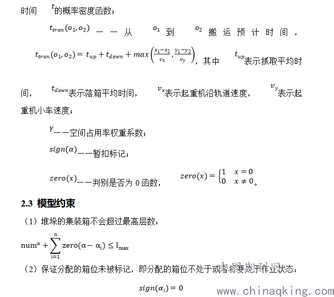 (1)待分配箱位的集装箱均为普通集装箱,不考虑特种箱;