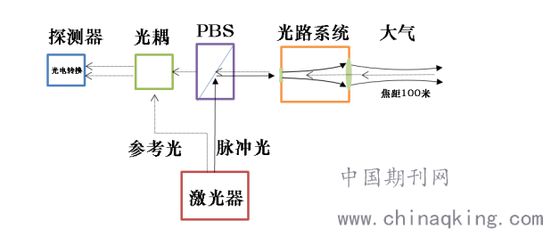 本项目采用相干探测的方法进行多普勒频移测定并完成风场的测量,与直接探测的最大不同点在于探测原理的不同。相干探测法是将微弱的多普勒频移信号与较强的本振信号混合在一起通过拍频的方式提取出来,而直接探测法是直接将发射激光回波信号的频率转换为能量的相对变化实现对大气风场多普勒频移的测量[2]。理论上相干探测比直接探测要简单许多,测量数据精准,探测距离远。
