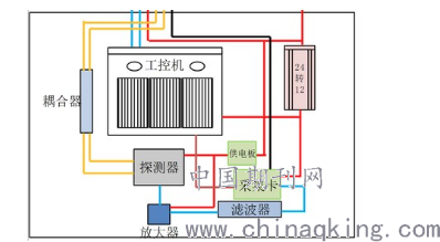控制系统内部设计为双层式结构,这样能保证空间最大化的利用。工控机和采集卡等模块在第一层,探测器,耦合器等模块在第二层,如图2-5所示,控制系统箱体内部结构示意图。