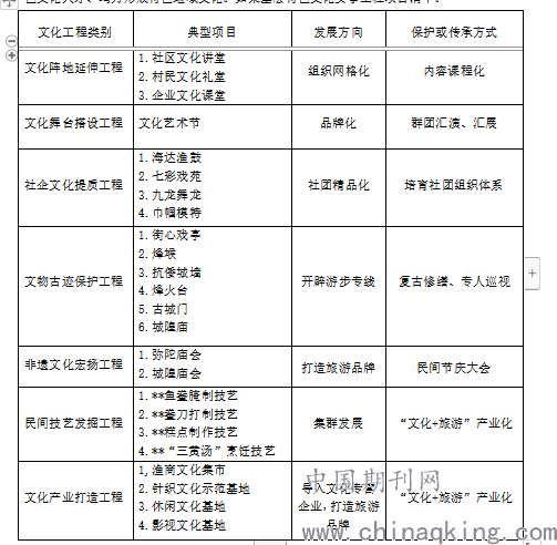 基层主要是借鉴了上述办法进行排摸、归类、分理后,针对性地传承与打造本地域特色文化,按照地方政府的要求,广泛开展特色文化活动、积极创建特色文化品牌、努力培养特色文化人才、竭力形成特色地域文化。如某基层特色文化实事工程项目清单。