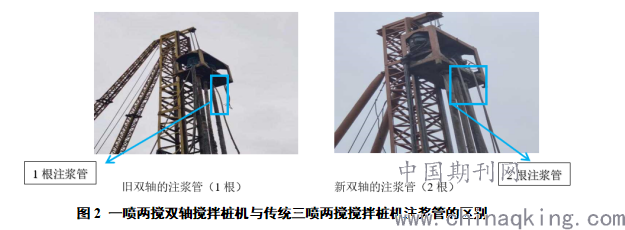 3.2 一喷两搅双轴搅拌桩机与传统三喷两搅施工工艺的不同