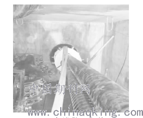 在出土点的一侧,将钢管沿钻孔轨迹线延长线位置摆放就位,并依次连接钻杆、桶式钻头、回拖活节、拉管头和钢管,管道回拖过程中,双方都使用无线对讲机进行通信。管线回拖采用发送沟的方式进行。在挖发送沟时,要测量管线进入孔之前发送沟的倾斜度,以确保发送沟与穿越孔洞的稳定。在回拖操作期间,增加高润滑泥浆,使得高润滑泥浆像塑料膜一样粘附在防腐蚀层的表面,从而降低了回拖的阻力,保持防腐蚀层。