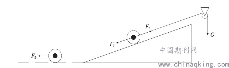 电缆在钢管内受力如图5所示,电缆在钢管的圆弧段因自身重力存在较大沿圆弧面向下的分力F1,圆弧段电缆对直线段电缆形成向左的挤压力F2,直线段电缆敷设后处在轴向受压状态下。当电缆运行后,电缆温度升高,刚度随之下降,直线段电缆在挤压力F2作用下产生弯曲变形,随着变形量的增大可能导致电缆折损;另外当电缆温度升高时,直线段电缆伸长趋势,对圆弧段电缆产生向上推力F3,只有当该推力F3>F2时,直线段电缆才会伸长。因此为保证电缆在热应力的作用下能够自由伸缩,必须根据电缆的刚性最大可能地减小圆弧段电缆沿圆弧面向下的分力F1。为此,本工程设计一种电缆伸缩补充装置,该装置一方面能够通过配重和动定滑轮组实现减小沿圆弧面向下的分力F1,另一方面电缆能够在装置下部滚轮的作用下沿电缆轴向方向运动,确保电缆能够自由地伸长和缩短。