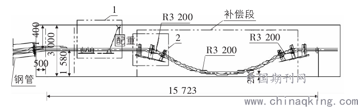 电缆在钢管内敷设就位后,由于钢管沿纵断面呈抛物线形,电缆放置于管道中,因温度变化管道内的电缆会产生热胀冷缩现象,以及电缆在自身重力作用下有沿着管内壁下滑的趋势,为防止膨胀时电缆在管道内被折损,收缩时拉伤,必须采取吸收补偿伸缩的装置。