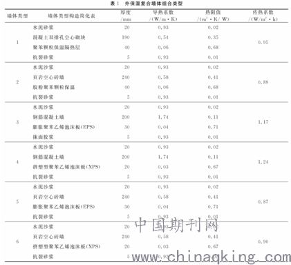 表1是现阶段6种常见类型复合墙体简化后的主要构造形式。