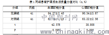 对护理后患者的生理职能以及心理职能进行打分,将两项指标分数作为衡量患者生存质量的标准。