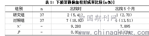出院前后,对比对照组,研究组的下肢深静脉血栓形成率均较低(P<0.05),见表1。