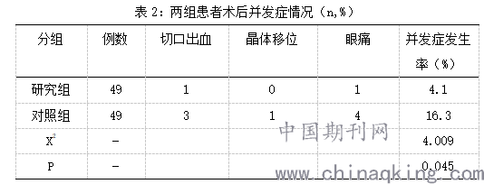 研究发现,对照组并发症发生率高于对照组患者,详见表2: