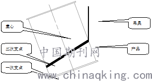 采用产品重心以下部位作为起吊点,采用产品重心位置作为起吊点,使用偏载起吊法起吊,首先选用产品底部一点作为翻转支点,见图2.3中所示“一次支点”部位。在吊钩逐步上升至一定程度后,产品脱离地面,一次支点失去作用。随后翻转支点转移至图2.3中的二次支点处,此时产品重心位于翻转支点左侧,产品受到自身弯矩作用,将造成产品瞬间失去平衡,左端加速降落,造成产品完全失稳并且失控,将会造成产品的巨大损伤。