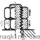 这种方法的使用主要是将两个螺母对顶拧紧,之后螺纹之间会出现一种摩擦力和附加压力。在变动工作载荷的情况下,摩擦力会使其保持拧紧的状态。这种方式结构相对来说比较单一,对于重载、低速、平稳的固定装置比较适用。然而这种方式比较占用空间。因此在动车组转向架上应用较少。具体情况如下图所示: