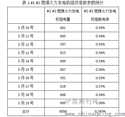 1.1.1 #1 #2燃煤火力发电机组改造前后参数统计