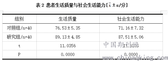 对照组患者生活质量与社会生活能力均低于研究组,有统计学意义(P<0.05)。