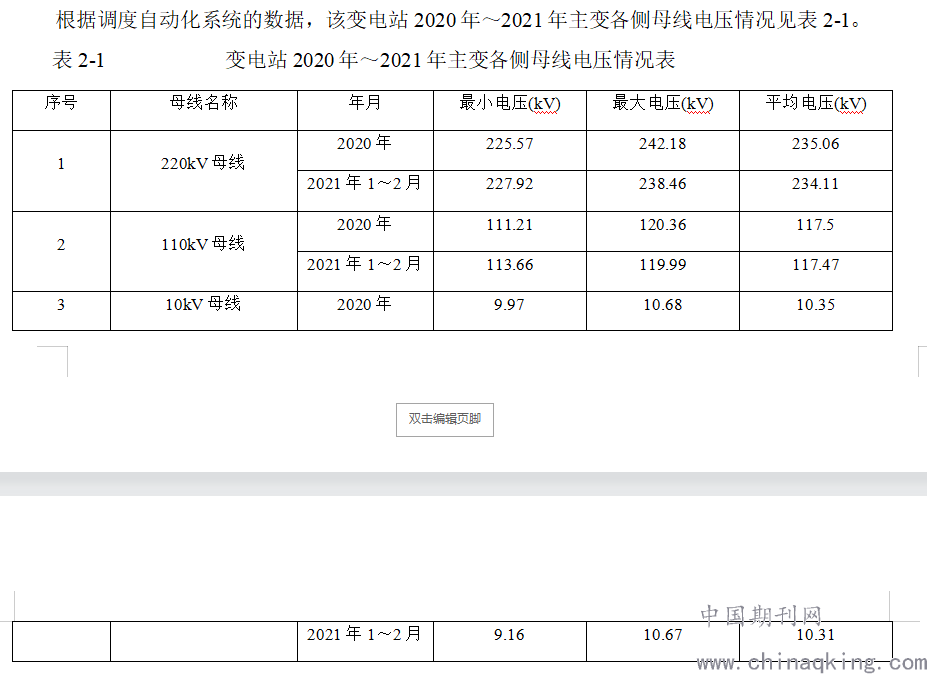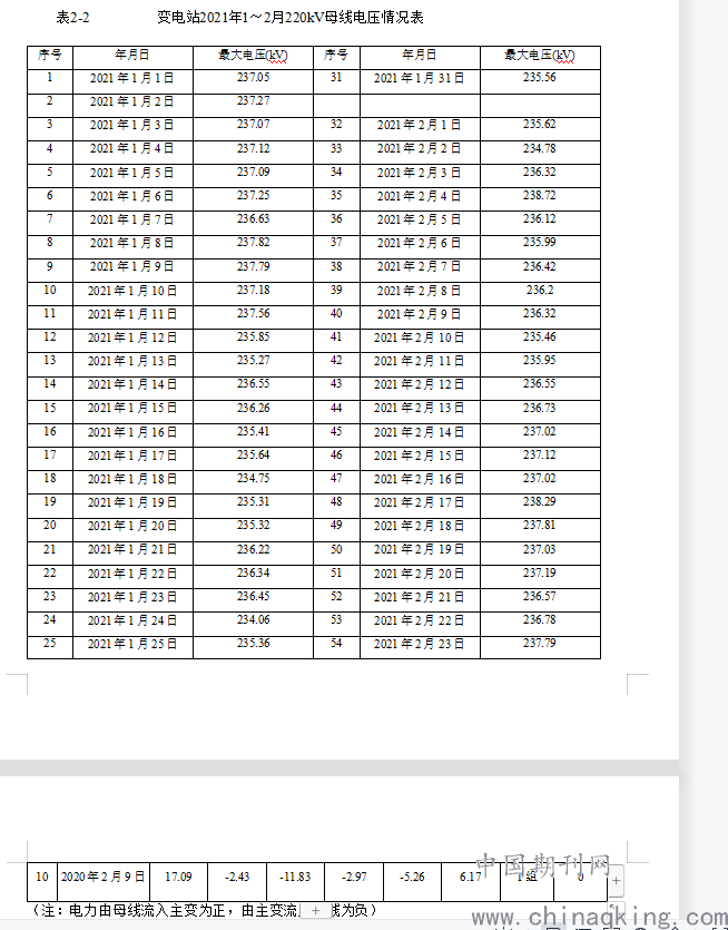 表2-2 变电站2021年1~2月220kV母线电压情况表