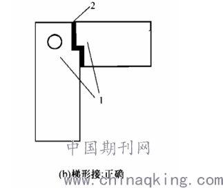 PCR实验室的风管采用热镀锌钢板制作,角钢法兰连接。风管采用咬口成型,为保证严密性,需在风管的正压侧涂抹密封胶嵌缝。风管与角钢法兰连接时,风管翻边应平整,并紧贴法兰,宽度不应小于7mm,并剪去重叠部分,翻边处裂缝和孔洞应涂抹密封胶。风管安装时,应选用5-8mm厚密封垫,法兰密封垫应减少接头,接头应采用阶梯型(图3-1)或企口型,并涂抹密封胶。为保证严密性,法兰上螺钉孔距不宜过大,宜小于150mm,同时矩形法兰四角应设螺钉孔。法兰均匀压紧后,密封垫内侧应与风管内壁齐平。咬接和法兰连接的金属风管,在胶封缝隙以后和保温绝热前要进行漏风检测。