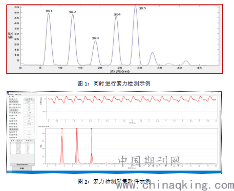 微波干涉测量技术主要通过雷达波的相位差对目标物的位移进行精确测量,对测试时程曲线进行傅里叶变换得出拉索振动频率,进而计算拉索的索力。雷达发出的微波呈扇形分布,在一定距离范围,若有多个测点在扇形区域内即可同时测得多根拉索的索力。该种测试方法最大的优点是非接触测量、测试效率高、同时实现多根拉索同步测量、测试精度高等。