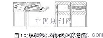 图1为地铁车辆轮对轴承的结构示意图,地铁机车轮对轴承的机械结构、应用场景、使用条件都和铁路机车的轮对轴承有很多共通指出,但二者之间也存在一定区别。例如,地铁机车轮对轴承要在速度变化频繁的条件下工作,地铁机车的停站时间也较短,这些都影响了轮对轴承的使用性能。选择轮对轴承需要考虑多种因素,目前国内的地铁机车企业主要采用国外的轮对轴承产品。