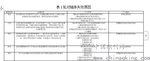 随着列车运营公里数年积累,轮对轴承失效现象频发,通过研究样品修理过程发现,高水平冶金生产工艺使轴承材料具备更优力学性能,但对没有达到额定使用寿命而失效的轴承进行分析可以看出,绝大多数失效轴承的失效原因是润滑效果不佳、密封圈破损、轴承内部进入杂质、安装不当、腐蚀以及受到超标准载荷,只有极少数轴承由于次表面疲劳导致失效,总结轮对轴承失效原因见表1。