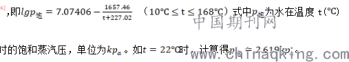 管子上端的水蒸汽可近似看成饱和蒸汽,其饱和蒸汽压可用安托尼方程计算[6],