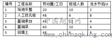 表1基础工程流水节拍