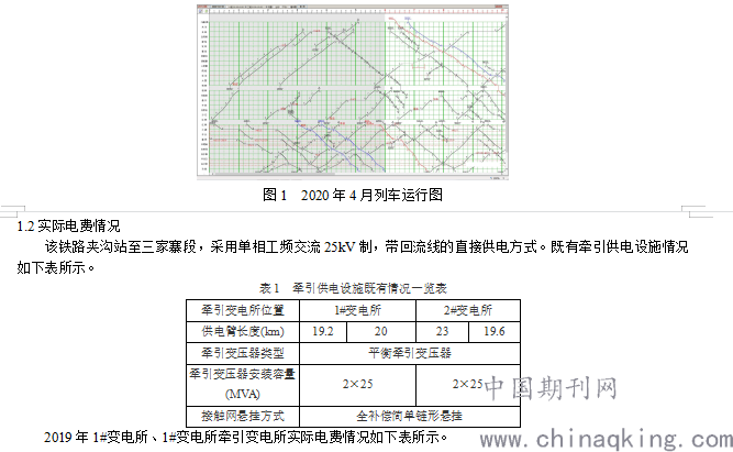 该铁路闭塞类型为半自动闭塞类型,一个区间内最多一列车,一个供电臂最多两列货车、发生过负荷跳闸的情况大多是供电臂多余两列货车的工况;最小行车间隔为20分钟;