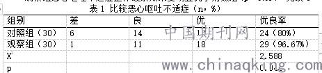 观察组恶心呕吐不适症整体缓解效果要明显优于对照组(p<0.05),见表1。