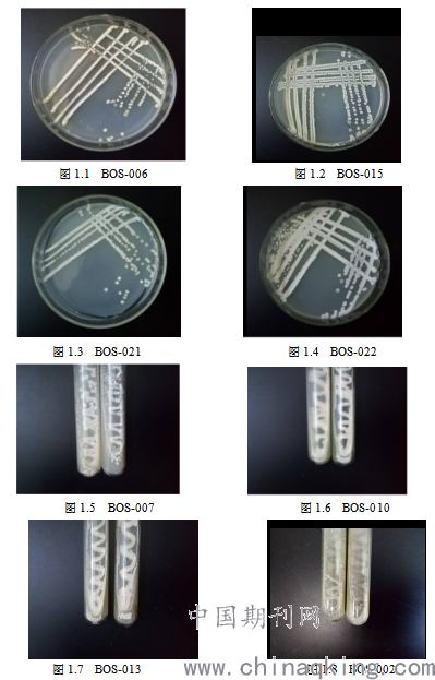 运用稀释分离法分离出形态特征不同的菌株,把分离好的菌株分别接到高氏一号琼脂培养基中保存[8,9]。其部分分离结果见图1.1-1.8。