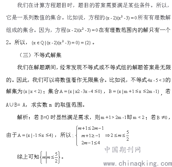 摘要:集合是高中数学必修一第一章的内容,它也是高中数学的基本概念之一。同时,作为高中生,我们在数学学习期间,会遇到方程、不等式等与集合具有紧密联系的知识,可见集合在高中数学学习中有着重要的地位。然而,我们在学习集合知识时,经常会出现在理解、应用等方面存在着问题,也就形成了模糊的认识,影响到了后续的学习。基于此,文章对集合题解析技巧,做一个简单的分析与研究。