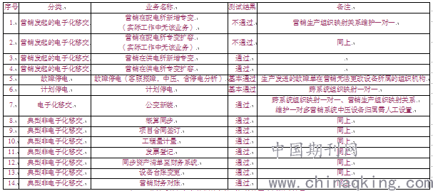 表3.1 营销系统组织机构不调整条件下相关协同应用测试结果