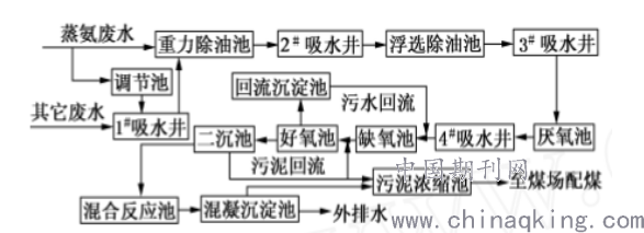 Fig.1Process flow chart of domestic coking wastewater treatment