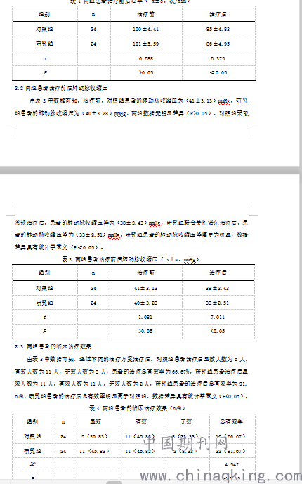 心率及肺动脉收缩压 测量两组患者治疗前后的心率以及肺动脉收缩压。