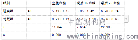 此次对照试验的进行过程中,选取两个研究参照对象的持续时间分别是从2017年1月份到2018年1月份,总共成功选取了80例目前患有严重妊娠期二型糖尿病的女性患者,在对其分别进行两个小组对照设置的试验过程中,其中80人将其设置为观察对照组,而另外的80人则在社区将其分别设置为定期观察对照组。对照组患者中的男性患者以及病人观察二次组男性患者的平均年龄性别分布情况不一,对照组患者中的男性患者平均年龄最小的大约只有45岁,二次组患者中年级最大的也不会允许超过59岁,其中一患者共有38位一例男性老年患者,其余的42位为一例女性老年患者,后者的一例男性老年患者大约为41人,其余的39人为一例女性老年患者,患者中平均年龄最小的为46岁,年龄最大的女性患者不可能允许年龄超过70岁,40例男性患者的病人平均年龄大约平均为53岁。两组检查患者的身体信息情况基本相同。