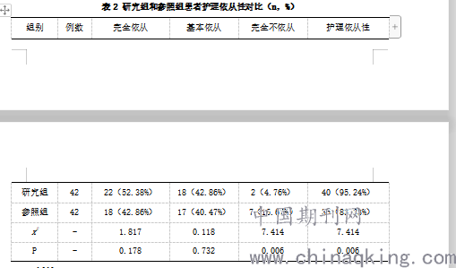 组间对比显示观测组患者护理依从性较参照组更高,组间差异有意义(P<0.05),详见表2: