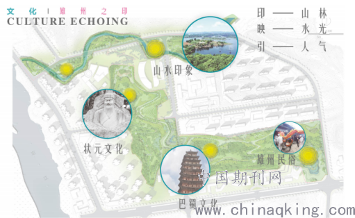 印鳌拱壁是简阳八景之一,指的是简阳城区沱江东安的印、鳌二山,两山相对,目前已经被简阳新城列入中央公园范围。印山周边是沱江,设计遵循现状依山势,理水系,尊重原有格局,结合现状地形与水系,布置景观设施;文化上突出雄州之印,将山水印象、状元文化、巴蜀文化、雄州民俗融入印山公园,这样不仅将简阳文化做了展示,同时也为当地文化的传承提供了渠道;生态上以公园新城的形式展示;功能上印山公园划分为不同的空间,分别展示了各种功能,以此来突出印山公园的综合性。