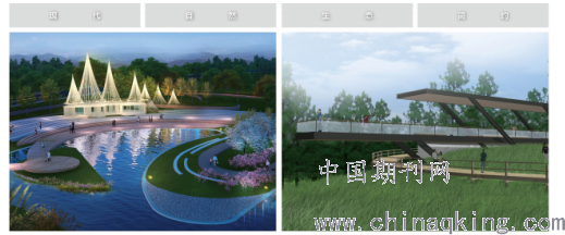 建筑构筑专项设计:以民俗风情为主,结合现代生态,采用钢板、木材、混凝土等材料,还原文化记忆,提高场地丰富的内涵;现代生态部分,以玻璃、钢材、石材等材料为主,与周边的环境相呼应,构建现代城市化设计。