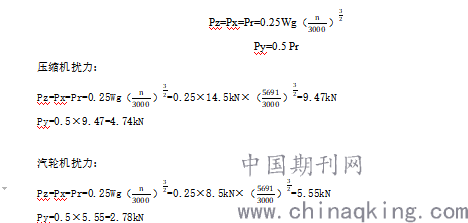 4.4.1按《离心式压缩机基础设计规定》(HG/T20555-2006 )6.0.3核算供应商提供的压缩机与汽轮机扰力值
