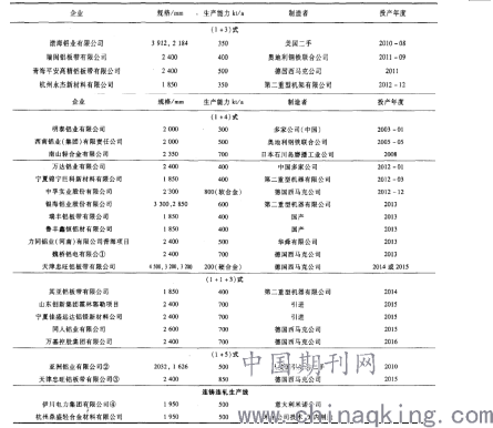 表2 中国在建的铝板带(1+1)热粗-精轧生产线