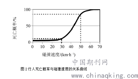 图2行人死亡概率与碰撞速度的关系曲线