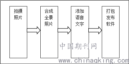 以虚拟图书馆为例,该技术的实现原理,首先通过相机在水平方向按每隔一定角度拍摄一张环绕360°,然后顶底各拍摄一张。再将这些图片导入到全景图合成软件制作成一张全景图,并通过flash等技术添加语音、文字和热点等交互信息,最后发布到网站上。