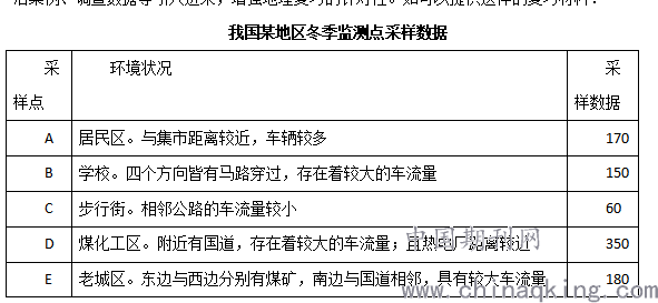 问题1:WHO认为,PH2.5数值在10以内不会危害到人体健康。但这些采样点的数值较高。请归纳各个采样点PM2.5的主要来源。