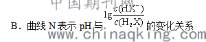 【分析】答案:D。该过程涉及的离子反应依次为:H2X + OH— = HX- + H2O ,第二步:HX-+ OH— = X2- + H2O。从两个关键点可以算出两个电离常数分别为 10-5.4和10-4.4,根据第一级电离常数大于第二级电离常数,可以得出B点所在直线N表示的是第一步电离,A点所在的直线M表示的是第二步电离。