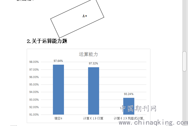 2.测查既注重知识测查,又注重能力监测。新课程标准指出:数学是研究数量关系和空间形式的科学。数学课程能使学生掌握必备的基础知识和基本技能;培养学生的抽象思维和推理能力;培养学生的创新意识和实践能力。