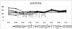 2019年9月17日至9月25日蒙阴县环境监测站对以上五个点位进行连续9天人工监测,共取得有效数据9组,根据监测结果对各点位进行作图对比: